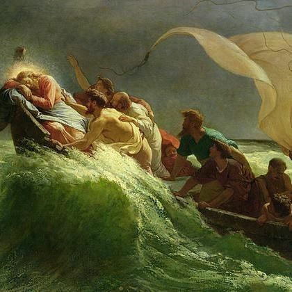 Pero volvamos a los discípulos y descendamos del monte con Jesús: “Al amanecer, Jesús vio como estos luchaban con el viento que azotaba la barca en la que se encontraban; ¡Y andando sobre el agua, se les acercaba Jesús!... Pero ellos “se asustaron y gritaron de miedo, creyendo ver un fantasma”, mas Jesús les calmó: “¡Animo, soy Yo, no tengáis miedo!”… Y Pedro, en un acto de fe heroica, le dijo a Jesús: “¡Señor, si eres Tú, mándame ir a Ti sobre el agua!”. Y Jesús le dice: “¡Ven!”… Y Pedro saltó de la barca, andando sobre el agua… ¡Pero pronto el viento fuerte le sobrecogió, y se llenó de miedo y se hundía!: “¡Señor, sálvame!”. ¡Y Jesús lo agarró y le reprochó su falta de fe porque había dudado!…