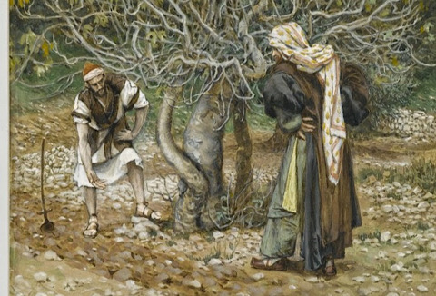 Y Jesús sigue insistiendo en sus reclamos y cambio de vida, ilustrando su Palabra con una parábola: “La higuera estéril”… Todos escuchan con mucha atención porque saben bien de lo que les habla: la higuera y la viña abundan en Palestina y ellas son muy cultivadas desde hace siglos... Esta higuera, de la que nos habla Jesús, es una higuera que parece estéril: lleva tres años sin dar fruto: “por sus frutos se conoce el árbol”. Así que, el dueño de la higuera (Dios- Padre), le dice al viñador (Jesús): “arráncala, ¿para qué va a estar perjudicando el terreno?”. Y el Viñador le insiste al Dueño: “¡no, déjame que la cave alrededor y le eche estiércol, a ver si da fruto en adelante, si no, la puedes cortar!”… (¡La higuera, es la casa entera de Israel!)…