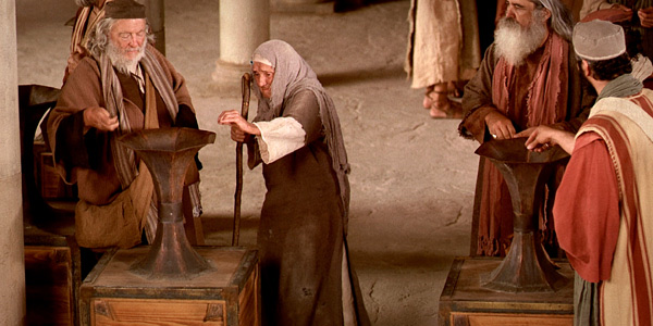 En contraste con estos escribas, se acerca al tesoro del Templo, una viuda pobre, un ser insignificante que nadie mira y menos lo que hace. Ésta, su condición, le da libertad para estar exenta del “¿qué dirán de mí?”... ¡Qué buena situación para mantener el corazón sincero y que sabe Quién le juzga sus acciones!: “Se acerca al cepillo del Templo y echa sus dos monedillas”... Esto es muy poco materialmente, pero Jesús les descubre a los suyos lo grande de este gesto: “Ha echado más que nadie, porque pasa necesidad y ha echado todo lo que tenía para vivir”. ¿Es que la viuda pobre podía pensar que el Templo, con el culto y sus sacerdotes, pasaban más penurias que ella en su mísera vida?... ¡No, la pobre dio todo lo suyo, porque Dios les pedía a todos sus fieles dar de sus bienes al Templo!... Lo que hizo esta mujer fue un acto precioso de culto a Dios. Seguro que le habría oído a Jesús: “Vosotros buscad lo primero el Reino de Dios y su justicia y lo demás se os dará por añadidura”. Sabía que Dios, si ella lo adoraba, era capaz de que no pasara necesidad. De todas formas, valoró más los bienes del Cielo que las riquezas de la tierra y esto hasta a Jesús le arrancó palabras de admiración y de alabanza…