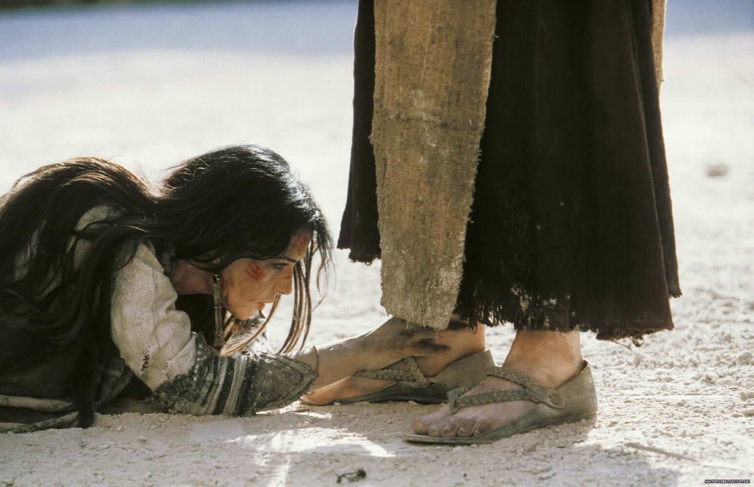De momento no respondes, te agachas al suelo y en la arena, escribes... Se ha conjeturado que, lo que escribes, son los nombres de los acusadores. Pero ellos no entienden, e insisten en preguntarte… Entonces, te incorporas y les cambias la pregunta, poniendo a cada uno como sujeto: “el que esté libre de pecado que, tire la primera piedra” ... Y para que ninguno se escabulla, haciéndose inocente, sigues escribiendo sus nombres en el suelo... ¡Maravilloso juicio, en el que los verdaderos pecadores, están ahora, no frente a la mujer, sino frente a sus maldades e infidelidades! Y no sólo ante la Ley de Moisés, sino ante Dios mismo que, lee en lo profundo del corazón y sabe lo que hay dentro de estos hombres que, se imaginan ser justos...