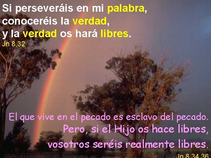 He aquí unos judíos que, habían creído en Jesús, se habían adherido a Él por su Palabra que, sentían, les comunicaba vida y una vida que iba más allá de su vida biológica... Pero, no sólo era escuchar su Palabra, sino mantenerse en Ella, con una gran perseverancia, porque ésta, es la que salva nuestra alma. Quedar clavado en Ella, a pesar de las dudas, de los titubeos en momentos: “¿Será o no será el Enviado del Padre?”. Es, dar autoridad a Otro para dirigir nuestros pensamientos y, sobre todo, el corazón que, ame no sólo la Palabra del Mesías, sino su propia persona: es a Él a quién tengo que amar, con todo lo que conlleva ese seguimiento: ¡amar su forma de ser, de pensar, de desear y amar, su misma vida y hasta su Cuerpo!... Esto, es “ser de verdad discípulo suyo” ... Sólo así, entra como faro potente en nuestro corazón, la Verdad, que es el mismo Jesús: “Yo soy la Verdad y la Vida” ... Y esta adhesión a Jesús, es lo que nos hace libres del pecado y de la muerte.