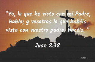 Así, somos hijos. Pero, los judíos hablaban de una paternidad carnal: de Abraham, antes de ser probado en la fe con su hijo Isaac. Ellos, se gloriaban de sus antepasados carnalmente, pero Jesús, los quiere hacer entrar en otra paternidad: la del Padre-Dios que, lo es primeramente de su Hijo Jesucristo. Sólo, a través del Hijo, podemos conocer al Padre y entrar en su intimidad, junto con Jesús: ¡éste, es el cielo, por eso, se dice que el cielo ya comienza en la tierra! Es que, por la Palabra de Jesús, conocemos Quién es Dios. Antes de su Revelación, Dios se manifestaba veladamente, por los justos y los profetas, pero, “ahora, en la etapa final,nos ha hablado por el Hijo”. Dios-Padre, nos lo ha enviado, para que, con su Palabra y su Vida, nos revele Quién es Dios.