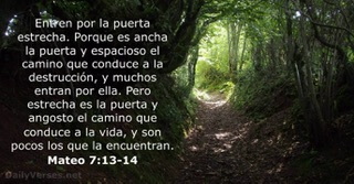13 « Entrad por la entrada estrecha; porque ancha es la entrada y espacioso el camino que lleva a la perdición, y son muchos los que entran por ella;
