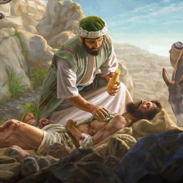 Entonces Jesús le instruye a él y a las gentes sobre el verdadero amor, relatándoles una parábola bien bella y transparente sobre la voluntad de Dios para con el hombre. Se trata de uno que fue agredido por unos bandidos y lo dejaron en el camino medio muerto. He aquí una provocación para los oyentes que escuchan a Jesús, introduciéndose en la escena trágica.