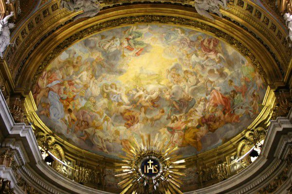 En la 10ª carta la del “cielo abierto entre el arte y la liturgia”, el autor nos está hablando de los frescos principales de la Iglesia del Gesù (Roma) y de cómo “predican” visualmente lo que sucede en la Eucaristía.