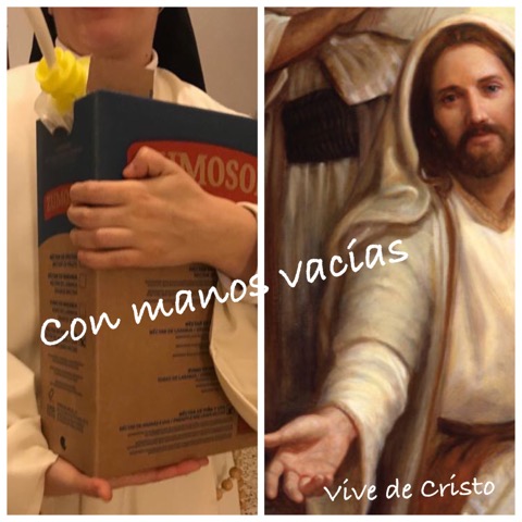 Cristo necesita que tengas las manos vacías, que sueltes todo aquello por lo que crees que te haces mejor. Las quiere libres para que sea Él el que las utilice, para que puedan disfrutar de tender una mano, de enseñar, de dejar paso a otros... y así descubrir que no tienes que lucir nada, que ya no tienes que poner tu valor en un cartón con zumo, sino que tu valor está en que tú seas el recipiente que acoge el zumo, ¡tú eres el brick! Y es Cristo el que te llena con Su Gracia, con Su amor, para que puedas tener las manos libres y así poder repartir el zumo de las mil maneras que se te presentan a cada momento.