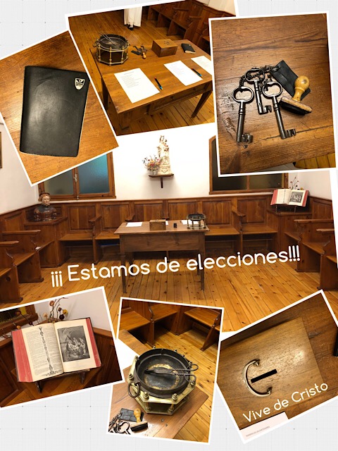 Ahora acabo de pasar por la sala capitular y he visto todo preparado encima de la mesa. Está la urna de los votos, el brasero donde se quemará todo, las Constituciones donde se lee el acto de la elección antes de empezar, la Biblia donde jurarán las escrutadoras, las listas de las capitulares... y las llaves y el sello de la Comunidad, que se entregarán a la nueva Madre Priora cuando haya sido nombrada.