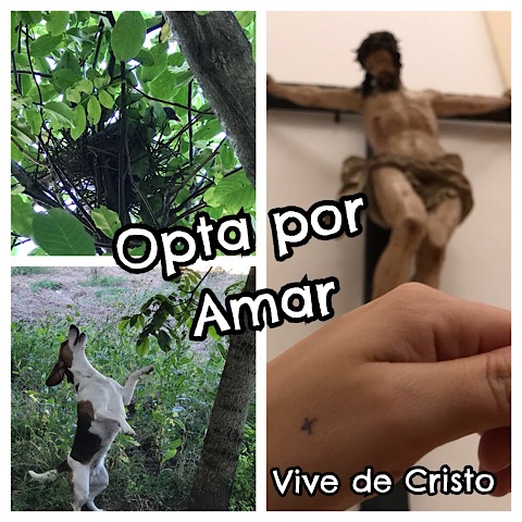 Hoy el reto del amor es que optes por amar, por no ponerte a ras de suelo. Dibújate una pequeña Cruz en la mano, que te hará mirar a Cristo cuando sientas que bajas del árbol, y, a la vez, es un signo “+”, de “positivo”, que te invitará a mirar a cada momento, a cada persona que te cruces, desde el “SÍ” desde la mirada de Cristo. Y te sentirás seguro en el nido.