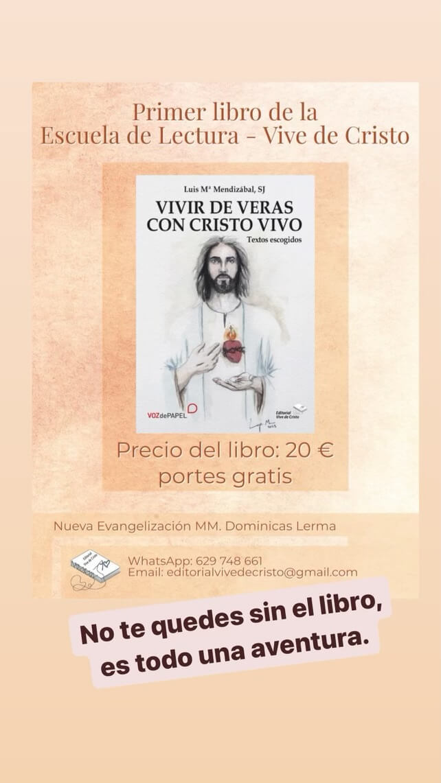 Postdata: Disponemos de algunas unidades más del libro “ Vivir de veras con Cristo vivo” (Luis Mª Mendizábal, SJ) que vamos a leer en la Escuela de Lectura. Si algún retero lo quiere adquirir os dejamos el formulario para que lo rellenéis.