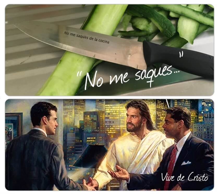 Cuando dejé sobre la mesa el cuchillo que estaba utilizando, pude leer que ponía en el filo: “no me saques de la cocina”. Alguien se había encargado de grabarlo para que no lo saquemos y lo utilicemos para otras cosas, pudiendo perderlo o estropearlo.