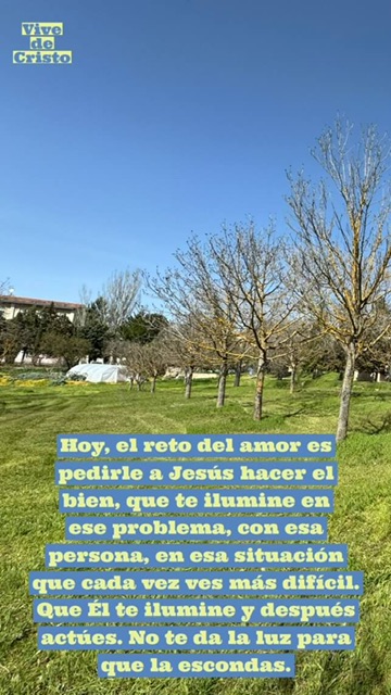 Hoy, el reto del amor es pedirle a Jesús hacer el bien, que te ilumine en ese problema, con esa persona, en esa situación que cada vez ves más difícil. Que Él te ilumine y después actúes. No te da la luz para que la escondas.
