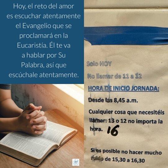 Hoy, el reto del amor es escuchar atentamente el Evangelio que se proclamará en la Eucaristía. Él te va a hablar por Su Palabra, así que escúchale atentamente.