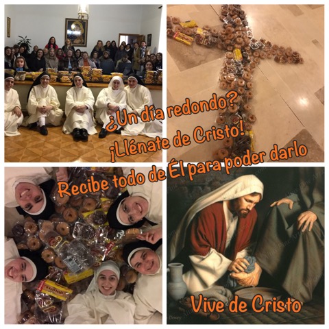 Y es que... cada día es como un Donuts: será redondo siempre y cuando dejes que ese hueco que tantas veces sientes vacío o sin sentido sea llenado por Cristo. Es Él el que va a hacer que salgan de tu corazón detalles como este muro que nos encontramos; es Él el que hará que se desborde tu interior para que puedas desbordar a los demás; es Él el que te hará contar con los demás para que "muchos pocos" se transformen en una auténtica "obra de albañilería".