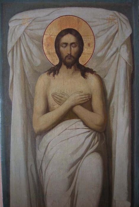 -    Muerto el Señor y obtenidos los necesarios permisos fue descendido su cuerpo exánime de la cruz y depositado en el sepulcro por Nicodemo y José de Arimatea.