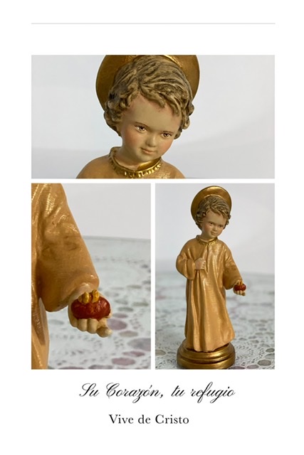 Cuando subí a mi celda, me encontré de frente un Sagrado Corazón de Jesús que me regalaron hace un mes. Es Jesús niño mostrando su corazón en su mano y con la otra abriendo su túnica, con una mirada serena y de total certeza.