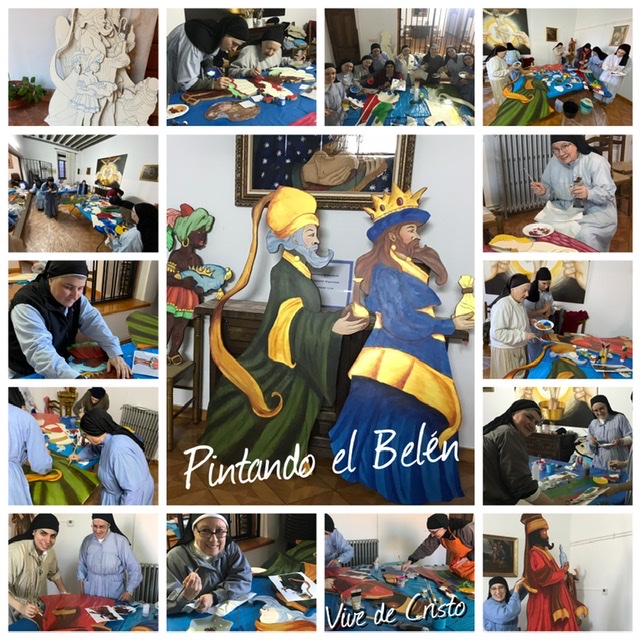 Desde hace unos días, toda la Comunidad estamos pintando unas “figuras” muy especiales de los Reyes Magos a casi tamaño real. Pedro, nuestro párroco, ante la circunstancia en la que nos encontramos, ha movilizado a todo el pueblo de Lerma para pintar un Belén sobre tablones de madera enormes, de forma que, sin tener que moverse de las casas, te llevan la figura que te corresponda y luego vienen a recogerla. Y después estará expuesto por la calle Mayor para que todos lo puedan ver...