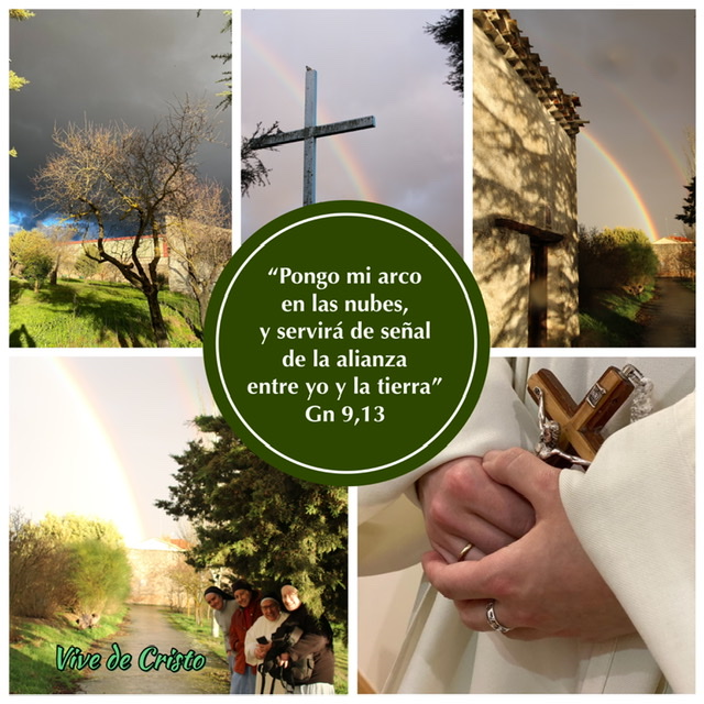 Volvimos a entrar en el Monasterio y, a los pocos minutos, otras hermanas que habían salido a pasear nos llamaron insistentemente. Salimos corriendo y... ¡un arcoíris como nunca antes había visto! Era el arco completo, lleno de color, e incluso hubo un momento en que se duplicaba. ¡Como niñas disfrutamos de ese momento!
