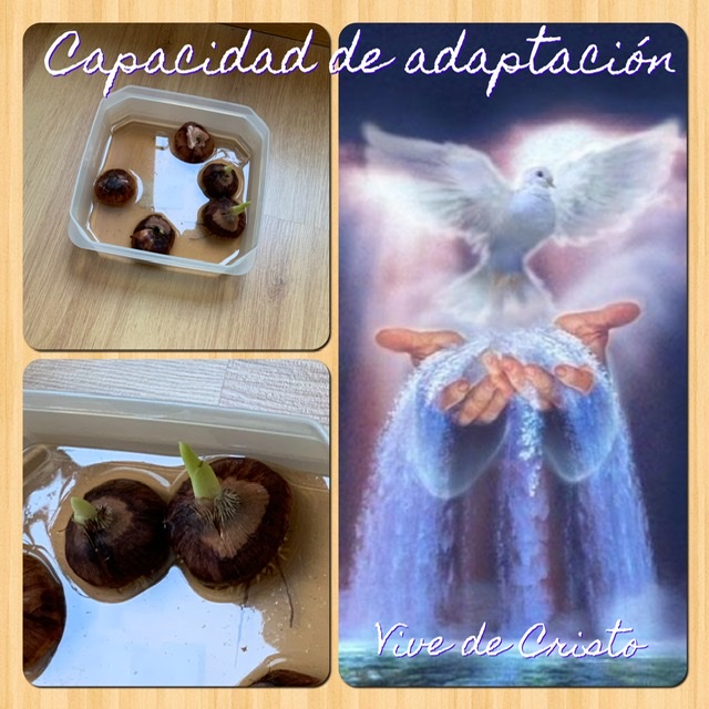¡Aquella conclusión me encantó! Pues muchas veces me sucede que, ante imprevistos o épocas de cambios, las circunstancias me ponen más nerviosa, y hasta que me adapto... Sin embargo, aquellos bulbos me enseñaron lo único fundamental: “donde sea y como sea, pero con Agua”. Esta es la clave para que de cada porción de nuestra vida podamos sacar provecho, podamos crecer, amar, vivir y ser felices. Cristo, nuestra relación con Él, la oración, la vida interior... esa es nuestra Agua, es lo único fundamental, a lo que no podemos renunciar para vivir.