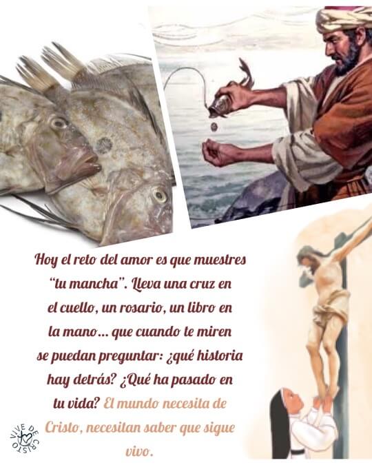 Hoy el reto del amor es que muestres “tu mancha”. Lleva una cruz en el cuello, un rosario, un libro en la mano… que cuando te miren se puedan preguntar: ¿qué historia hay detrás? ¿Qué ha pasado en tu vida? El mundo necesita de Cristo, necesitan saber que sigue vivo.