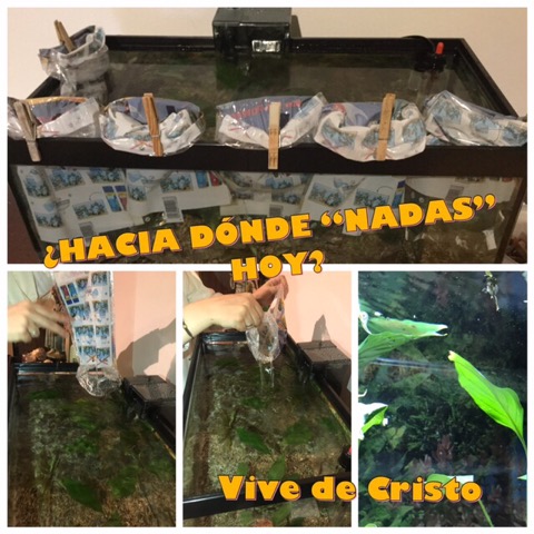 ¡Ayer llegaron los peces! Israel ha estado preparando la pecera desde hace más de una semana: limpiarla, limpiar las piedras, preparar agua, lograr el ph adecuado, aclimatar las plantas y, después de lograrlo (con sus peripecias), dejar unos días de reposo; ahora ya por fin llegaron los peces.