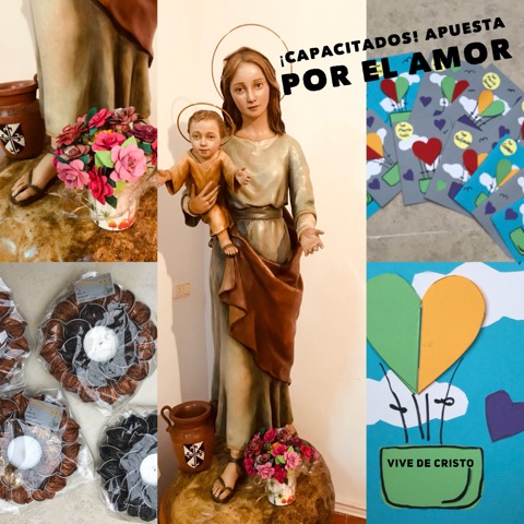 Nos regalaron unas flores hechas por ellos para la Virgen, unas ingeniosas velas hechas con cápsulas de café y una tarjeta en las que aparecía el nombre de cada monja y una frase personalizada. En la portada... un gran corazón y más corazones decorando. Nos impactaron tantos corazones, y es que en ellos veíamos que tenían lo más importante.