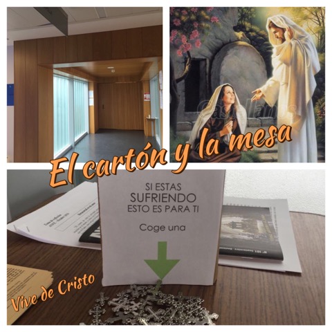Total, cogí un cartón, y al ordenador hice este cartel: "Si estás sufriendo, esto es para ti: coge una", y con una flecha indicando. Pegué el papel al cartón y me bajé a la entrada de la capilla. Allí había una mesa. Puse en ella el cartel y junto a él, un montón de cruces pequeñitas. Después de saludar al Señor, me marché. ¡Ahora ya era cosa de Él!